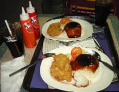 メーターの無いタクシ−の値段交渉には何とか慣れてきたものの、このメータ付きタクシーのインチキ運転手がメーターを倒さなかったを、車内の"蚊"騒ぎですっかり見落としてしまったのだ。 車内にヤブ蚊が5匹ほどが獲物を探して飛んでいるのを見るとだれだってマラリア気分になってしまうでしょう。文明社会から来たツーリストにとっては大騒ぎなのですから・・・ さて、かの蚊と格闘してる僕らをニヤニヤと見ていた運転手は、ショッピングセンターの前まで来て渋滞にはまってしまった。 「ここで降りるから、いくらだい?」っと聞いてびっくり。300バ−ツ(900円)。空港の職員は60バーツ(180円)くらいじゃないかなっと言っていたので僕は運ちゃんに話がめちゃめちゃだと言った。 こちらも乗車する前に60バーツ位でいけるねと確認したので安心していたのだが運ちゃんは、「空港からシティーまでは300バーツの統一料金だ。」と譲らない。「こちらが200バーツもうこれ以上出せない。」っと言い張るとやはり300バーツの返事。車は道路に停車したまま値段交渉は難航してしまった。しょうがない250バーツの妥協案で運転手はしぶしぶ納得した。ただし高速道路代が30バーツだから俺の取り分は220バーツだと最後まで言い張っていたが。 ポケットから300バーツを取り出し、つりをくれと言うと今度はつり銭が無いといい始めた。このよく使う手は見え見えなので、こちらも少し凄んでみると、運ちゃんは100バーツを片手に車を降りて反対車線まで渡り、他のタクシーに両替してもらい戻ってきた。 運ちゃんよ日本人観光客をなめるでないぞ! 露天商の狭い通路を抜け、階段を15段ほど上るとショッピングセンターの入り口があった。 エアコンがキチッリと効いた店内はさしずめワイキキのアラモアナショッピングセンターの様な造りになっていて、中央は4階までの吹抜けスペースになっていた。 まずは1階のイベント会場で行われている、タイ、ミャンマー地方物産展を見ながら、お土産になりそうな品々を物色した後、ケンタッキーフライドチキンの前に立った。 高校生のアベックやら、お母さんに連れられた小学生、ちょっとワルそうなニキビつらの中学生まで、そこに集まっているお客の層は世界共通だ!