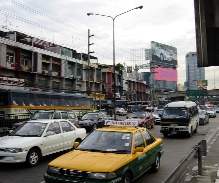 楽しかった船旅が終わり、短い間だったけれども船のクルーや他の乗客と沢山できたお友だちに別れを告げ僕らはタラップを降りた。 上陸すると、すでにトランクは運び出されていて、このくそ熱い炎天下の中40分も待ちぼうけしていた、ハイヤーの運ちゃんが少し不機嫌そうな顔で僕らを待っていた。 トランクと僕ら二人を車内に納めると、運ちゃんはフィルコリンズのカセットを少し大きめの音で鳴らし、またもやアクセル全開でトヨタカムリを国道を空港まで走らせた。 近頃タイ近郊では高速道路の整備が急ピッチで行われていてるらしく、少しすると出来立てホヤホヤの高速入口が見えてきた。 黒い排ガスを吐きながらトロトロは知っているバンに嫌気がさした運ちゃんは、「高速道路にのるか?」っとぶっきらぼうに聞いてきたので50バーツ(400円)を渡すと、カムリははじけるように高速道路へと突進していった。 ちょっとこのカッ飛び運ちゃんにはヤバかったかな――の予感はすぐに的中し、車のメーターは100キロから140キロ、160キロ,180キロとグングン上がっていく・・メーターのゲージは220キロまであったけれども、お客を乗せているのにこんなにスピードを出すなんて非常識!目が点になってしまった。 −−−またアクビが止まらなくなってきた運ちゃんに高速走行中に話し掛けるのもかなり危険な行為で、シートベルトをさらにキツク締める我々であった。 だって話し掛けるとどんな状況でも後ろを振返って話をするからなタイのドライバーは。 その後、カッ飛び運ちゃんの速度記録の更新は携帯電話の着信ベルによってひと段落し、160キロでの片手電話走行がしばらく続いたのであった。 手の平とお尻に十分冷や汗をかいた後、午後2時半にドン・ムアン空港に到着した。 ハイヤーの運ちゃんはチップを受取ると、ニヤっとしたがすぐに運転席に戻り、アクセル全開であっという間にいなくなってしまった。 日本行きのJALの出発時間は午後10時30分。 チェックインの時間を聞いてみようと、カウンターの空港職員に聞いてみたところ午後8時からということであった。 「まだ5時間もあるわよ!どうするのあんたら?」っと彼女はこちらを気遣ってくれるので、どこか面白いスーパーとか近所に無いかねーと尋ねた。 すぐそこにあると言うことであったが、カウンターのお姉さんは同僚に声をかけると、話がなにやら大きくなっていき、あそこがいいとかここがいいとか、チャックインの乗客を待たせてまで話に乗ってくれた。 最後にチャックインカウンターのデスクの上にあったボーディングパスを無造作にちぎると、裏にセントラル・プラザと英語で書きまじめた。タイ語でもしっかり書いてもらったのはいうまでもない。英語が読めないドライバーも沢山いるのだから・・・ ショッピングセンターには高速道路を20分ほど走り到着した。 ところがここで大事件が発生した。