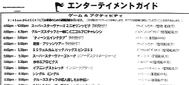 毎日夜に配られる船内新聞(左) この中には、翌日の催しやレストランガイドが載っている。 かなりのボリュ−ムがあり、航海中ポケットに突っ込んでお いて暇があれば眺めていた。 毎日英語新聞の後に、翻訳版も配られる(下) これがあれば、英語が出来なくても心配無用。 ![]() |